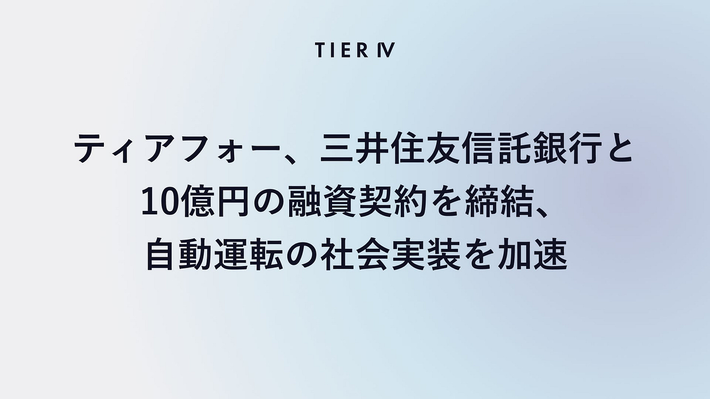 ティアフォー、三井住友信託銀行と10億円の融資契約を締結、自動運転の社会実装を加速