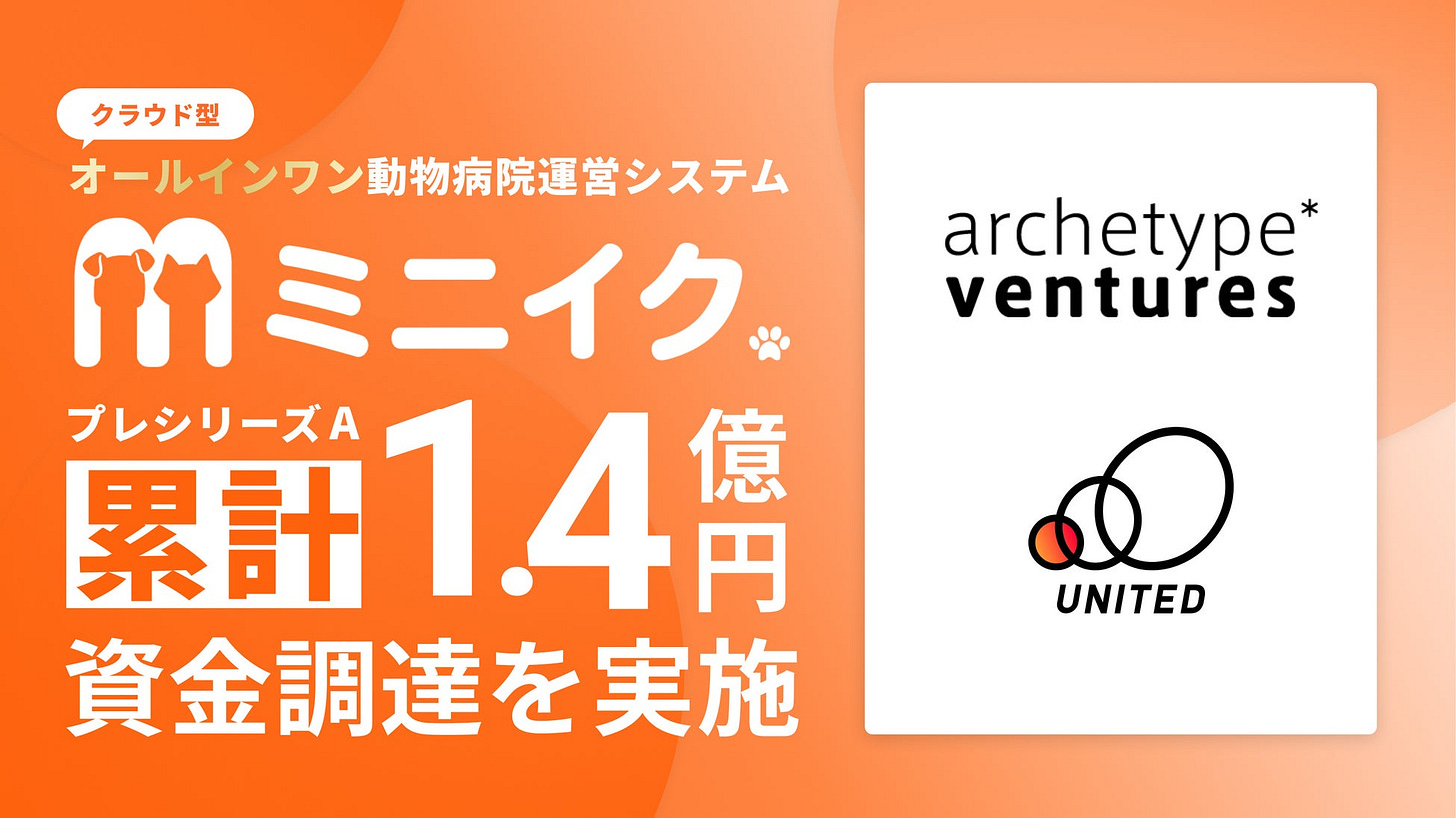 オールインワン動物病院運営システムを提供するミニイク株式会社が、累計1.4億の資金調達を実施。