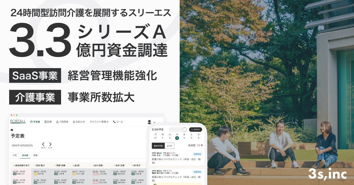 24時間型の訪問介護領域に特化したサービスを展開するスリーエス、HIRAC FUNDなどから3.3億円の資金調達を実施