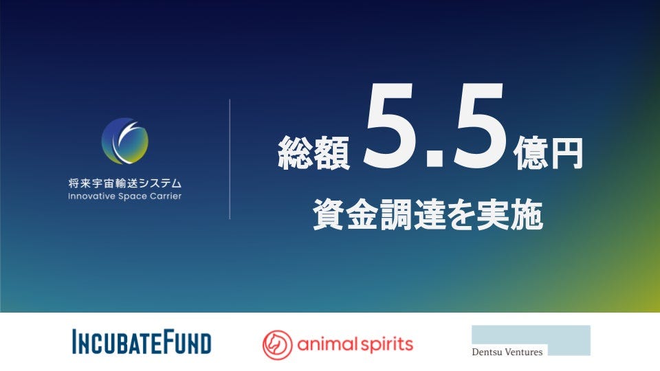 将来宇宙輸送システム株式会社、インキュベイトファンド、アニマルスピリッツ1号ファンド、電通ベンチャーズSGPファンド等を引受先とする総額5.5億円の資金調達を実施