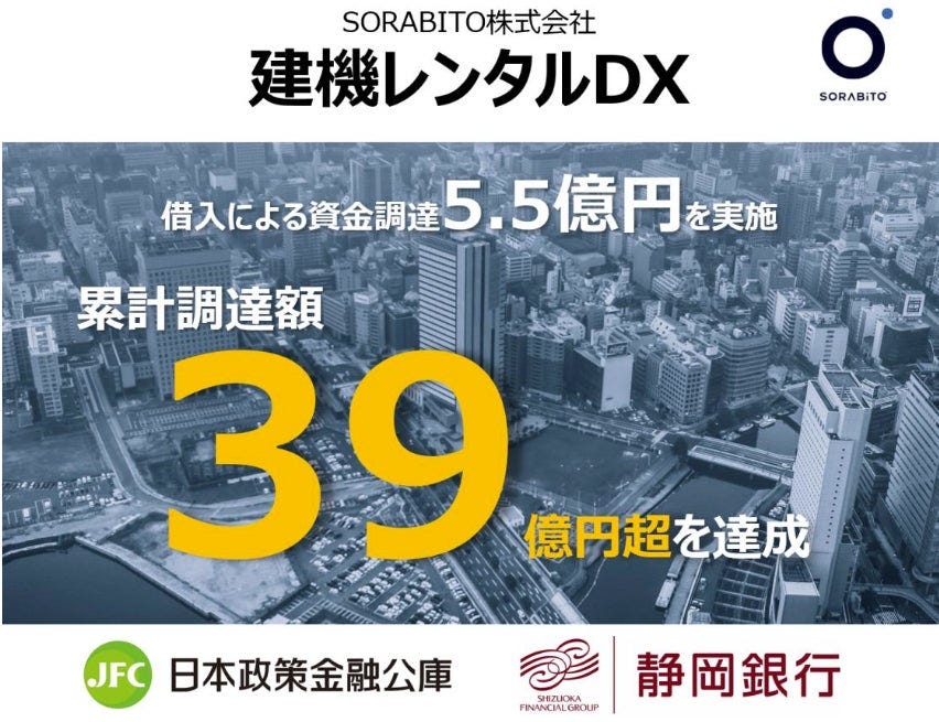 建機レンタルDX推進のSORABITO、日本政策金融公庫及び静岡銀行から5.5億円の資金調達を実施。創業来調達額は39億円超に